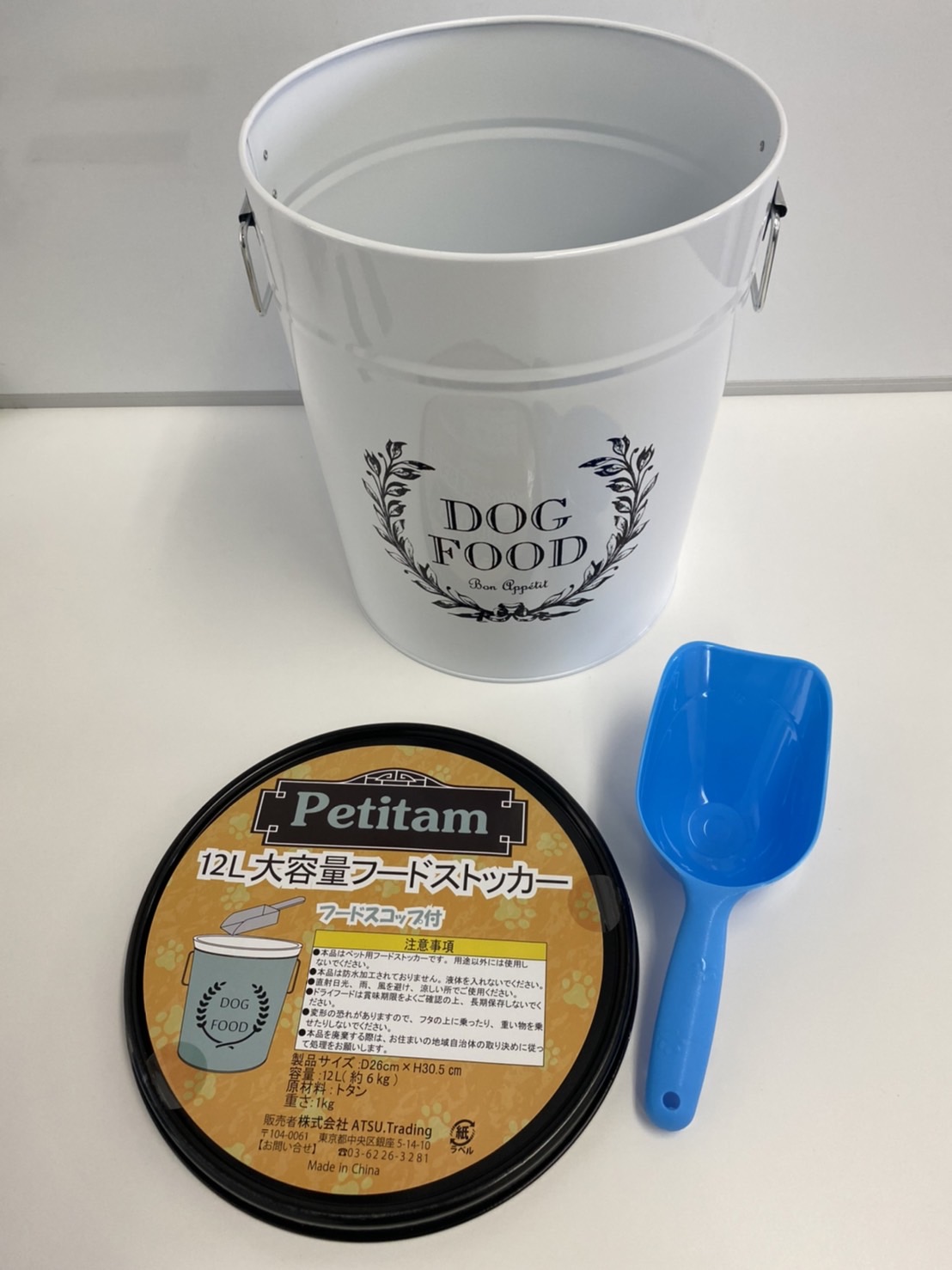 | 使用方法 | 1.開封・フードの投入: ストッカーの蓋を開けて、ペットフードを直接入れます。12Lの容量があるので、まとめ買いしたフードを一気に収納できます。 2.スコップで簡単取り出し: 付属のスコップを使って、必要な量のフードを取り出せます。手を汚さず、衛生的にフードを給仕できます。 3.密閉でフレッシュさをキープ: 使用後はしっかりと蓋を閉めて、湿気や害虫の侵入を防ぎます。トタン素材の丈夫さで、フードの新鮮さを長期間保ちます。 |