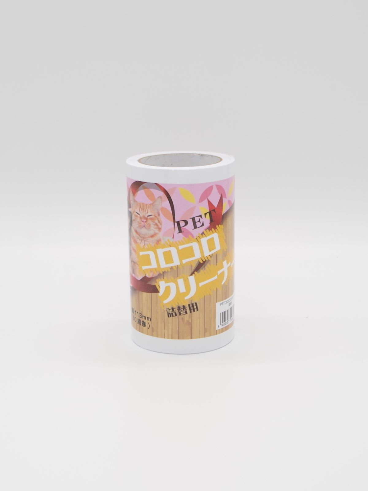 | 使用方法 | 1.コロコロ本体を取り出し、ペットのいるお部屋や家具、衣類などに軽く押し当てて転がします。 2.粘着シートに毛やホコリが付着したら、使い終わったシートをはがして新しい面を出します。 3.繰り返し使用することで、ペットの抜け毛もお部屋もいつも清潔に保つことができます。 |