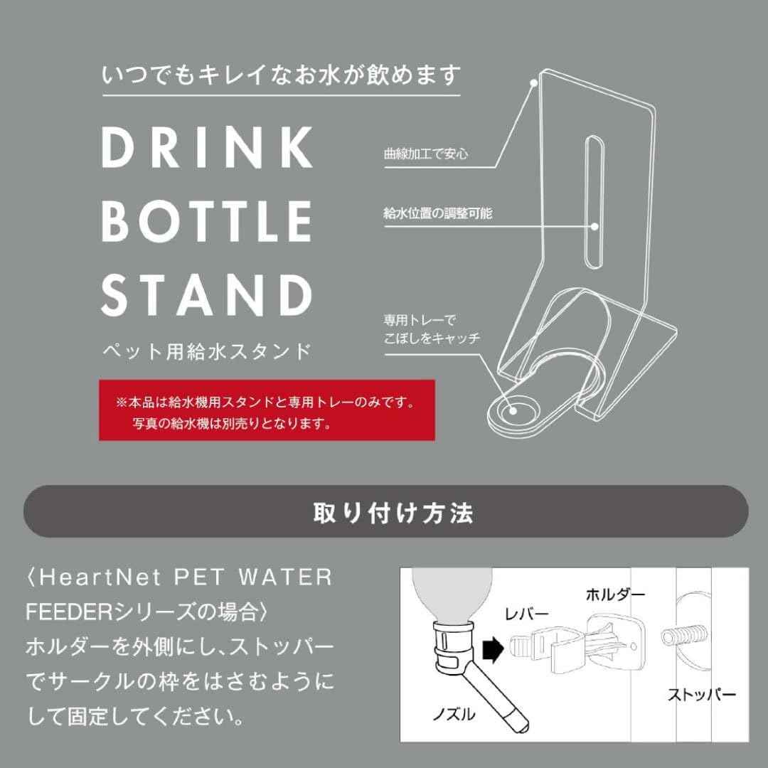 | 使用方法 | 1.給水スタンドを組み立てます。(必要に応じて付属の説明書をご確認ください) 2.別売りの給水機や給水ボトルを、スタンドの専用ホルダーにしっかりと取り付けます。 3.ペットが自然な姿勢で水を飲めるよう、スタンドの位置や高さを調整します。 4.給水ボトルがしっかり固定されていることを確認し、日々の水分補給をサポートしてください。 |