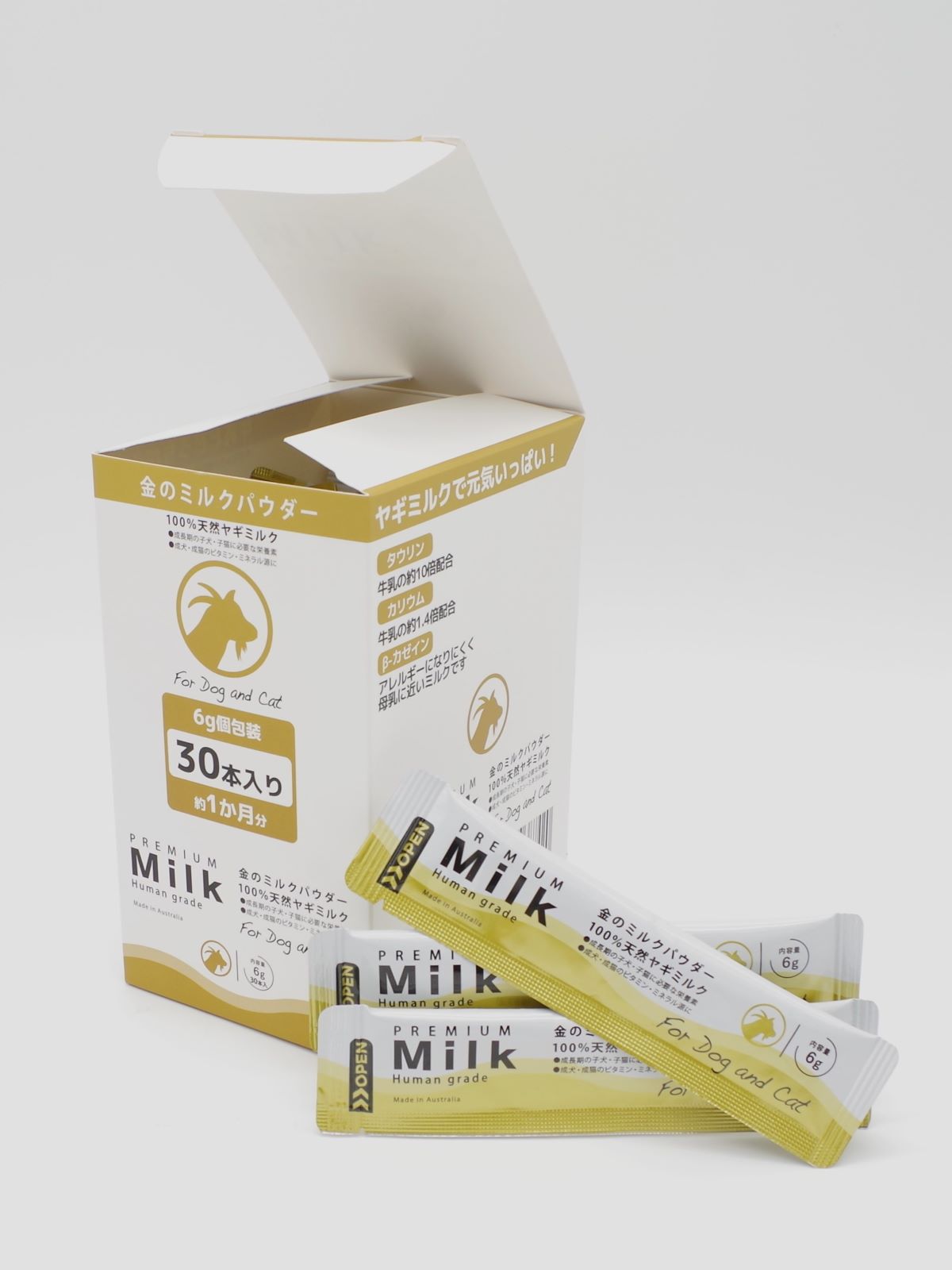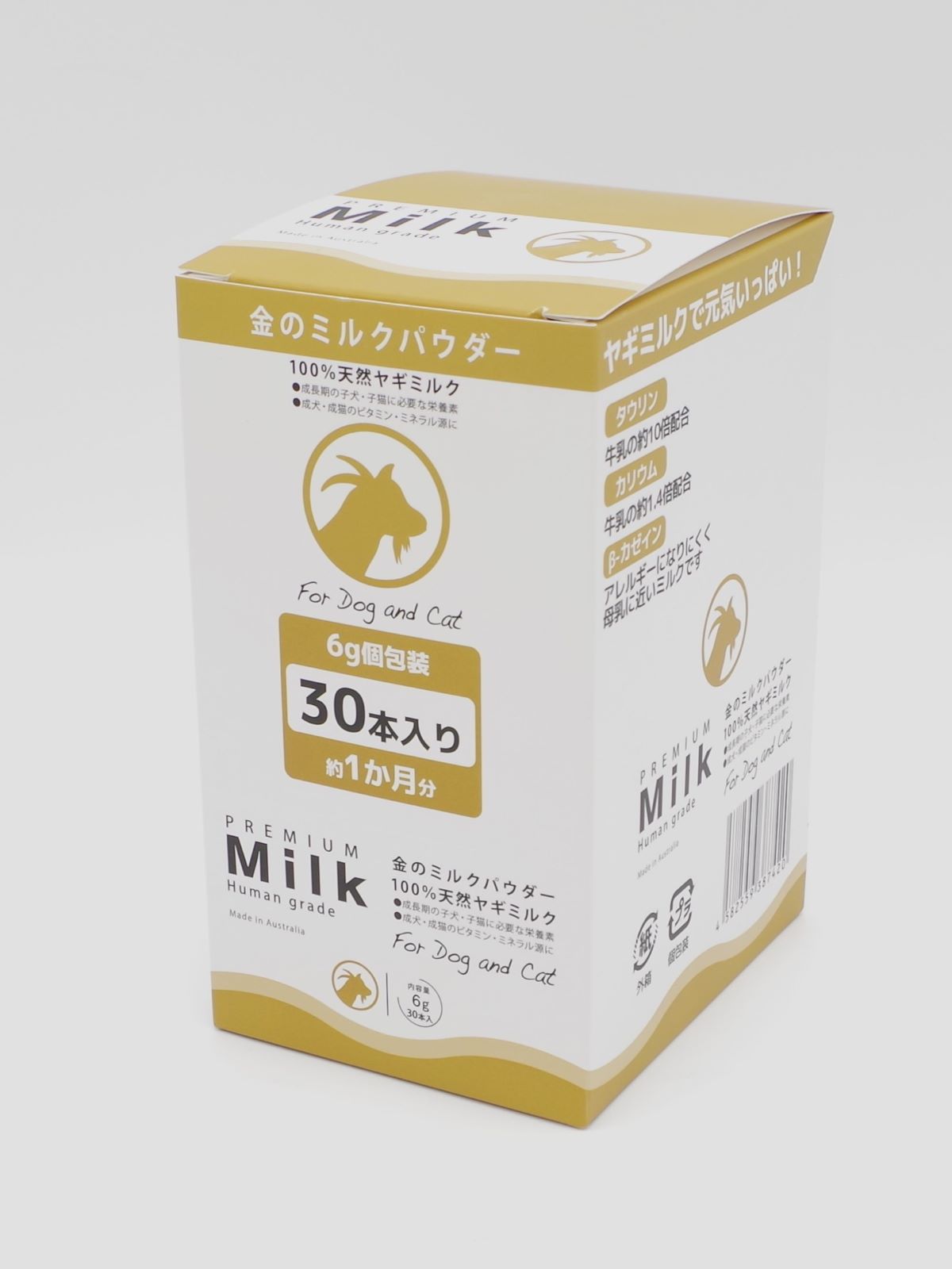 オーストラリア産・天然ヤギミルク100%使用の消化吸収に優れたプレミアムミルクです。